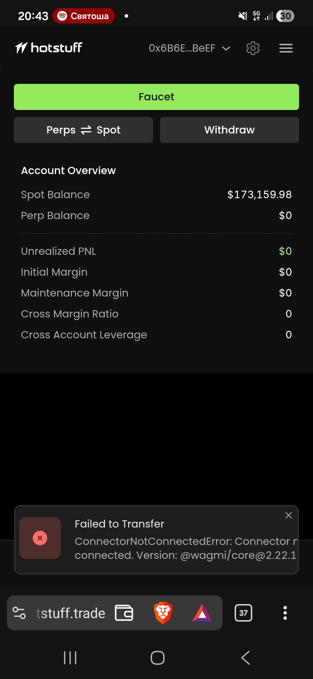 1) Bug: Press "swap USDT," then an error occurs.2) It would be good to add a "transfer" button on the trade window.3) The text has to be inside the grey square.